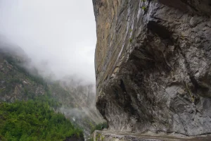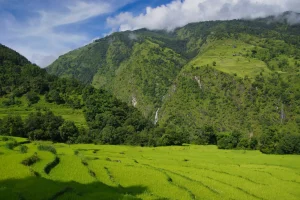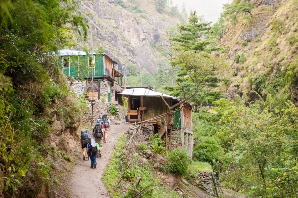 Today’s trek will take approximately six hours. The trail winds through forests, quaint villages, streams, and beautiful waterfalls. You’ll eventually reach Lapu Besi, a village predominantly inhabited by Mongolian residents. From there, you’ll continue on a zigzagging path to Machhakhola and then to Khorlabeshi. This area has a small market with a few shops and hotels. Meals for the day include breakfast, lunch, and dinner. Overnight stay in Machhakhola.